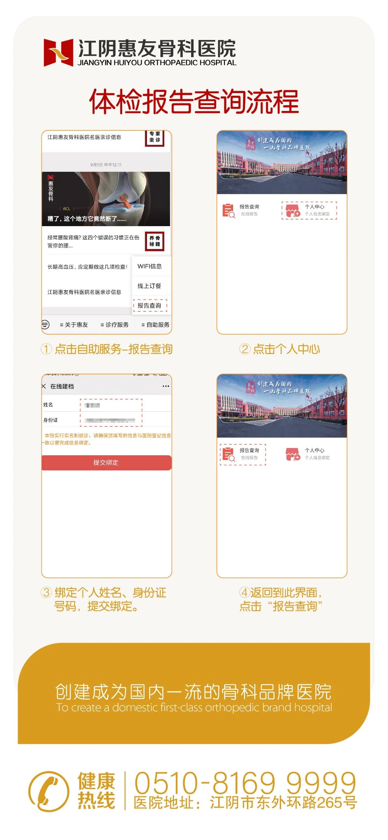江阴惠友骨科医院体检报告查询系统正式上线啦!